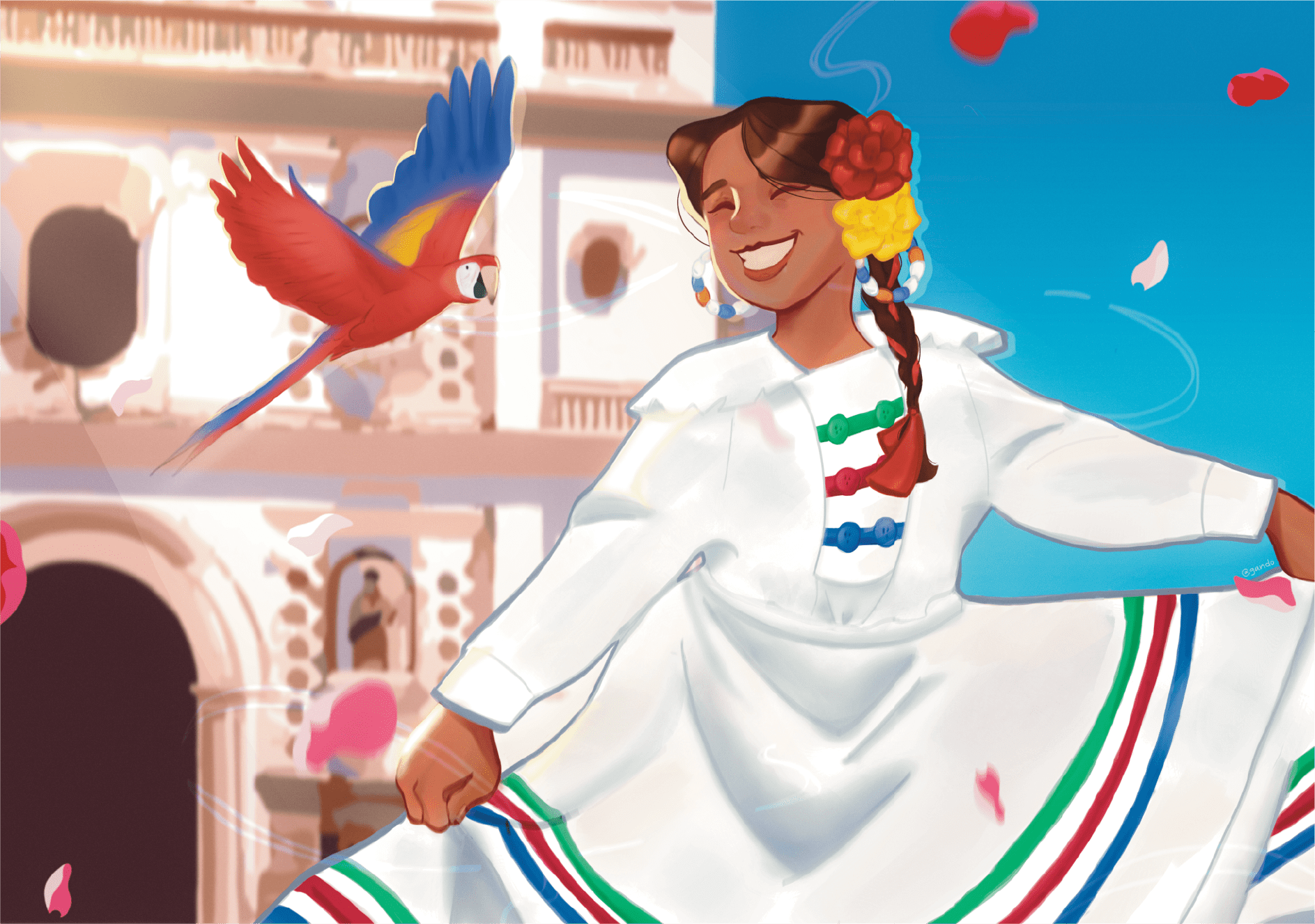 I participated in the ‘Banco Atlántida Art Challenge’ with two illustrations that reflect different aspects of Honduran realities. The first one explores the happiness and energy of our dancing culture. The second one captures the simplicity of a typical day in our streets.